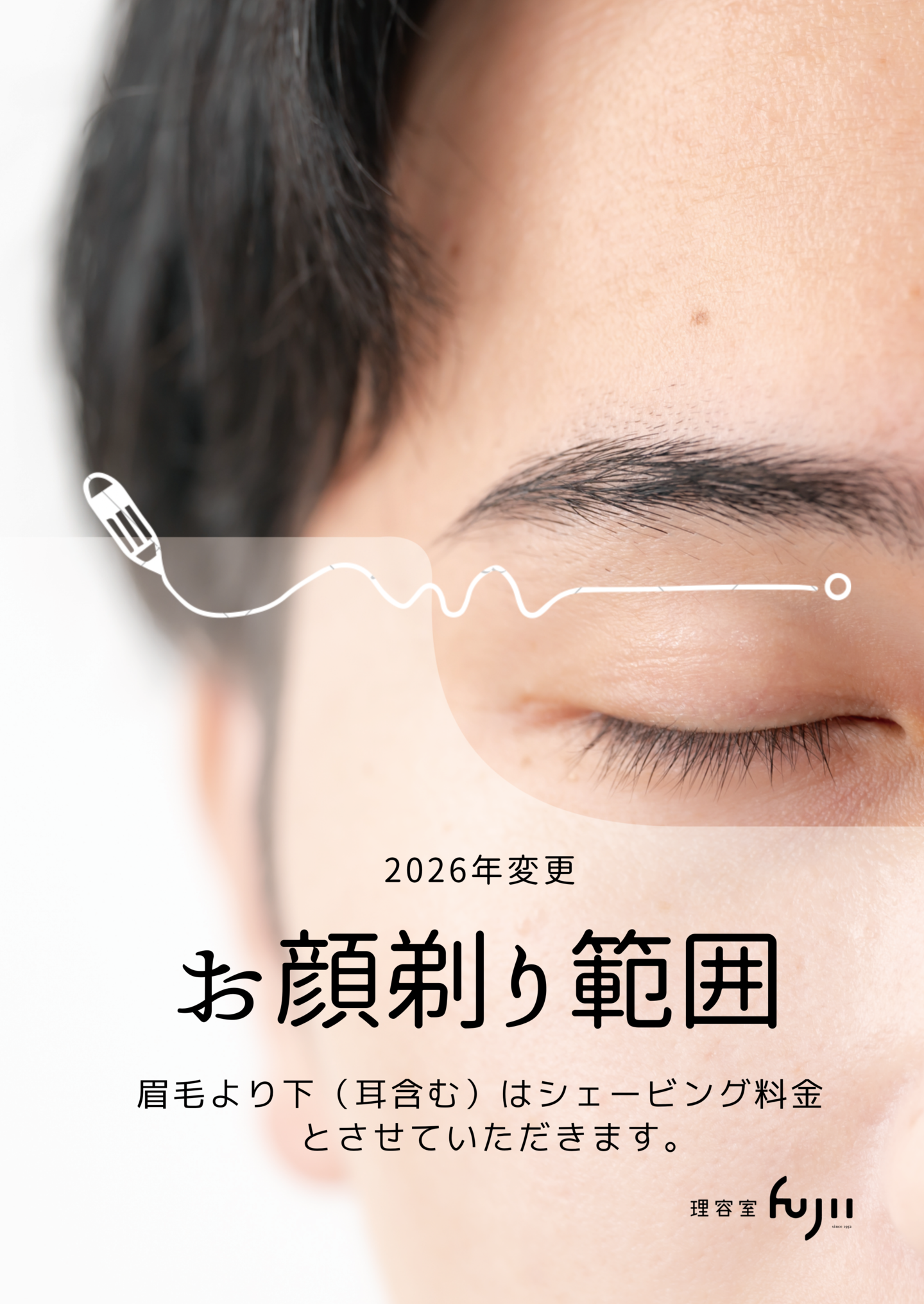 2026年より「眉毛・額」のみになります。眉毛より下(耳含む)はシェービング料金となりますのでご了承ください。